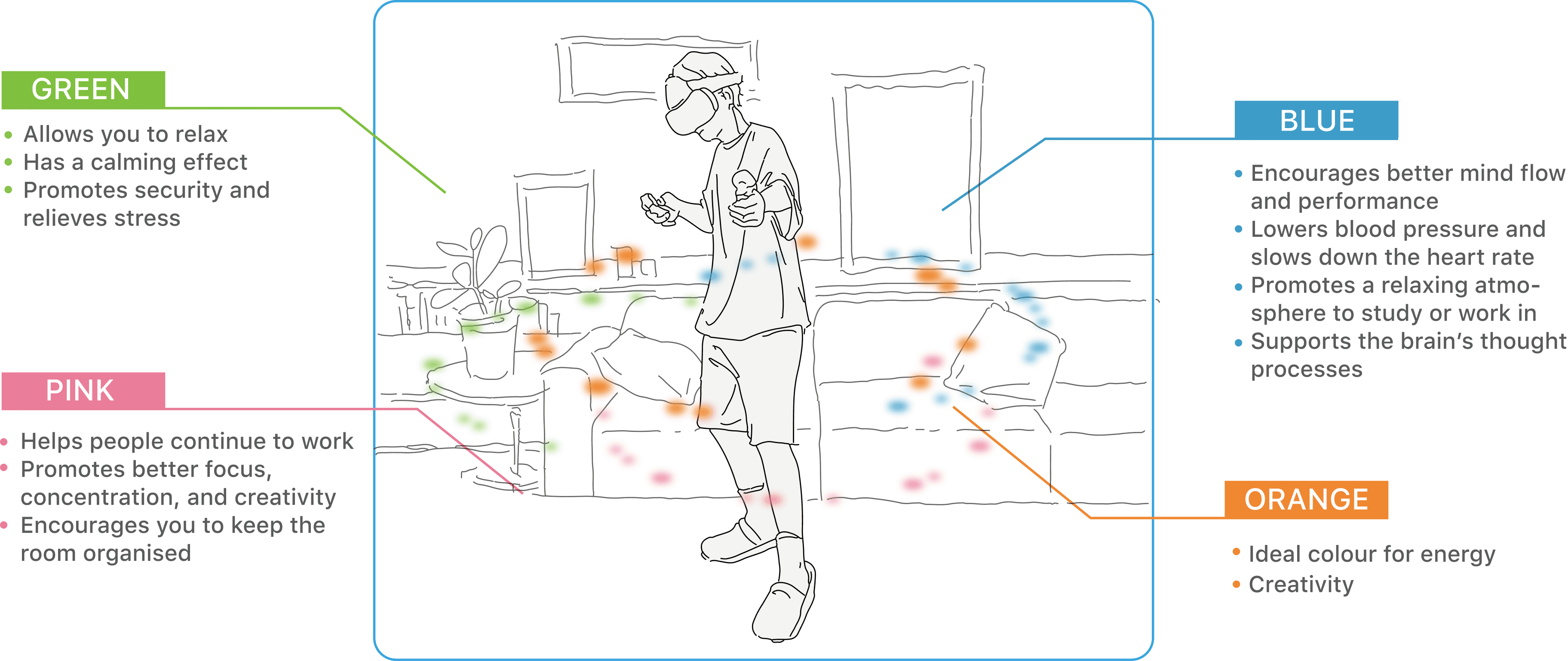 Color can play an important role in conveying information, creating certain moods, and even influencing the decisions people make.The psychology of colours has a remarkable impact in promoting concentration and productivity at home.